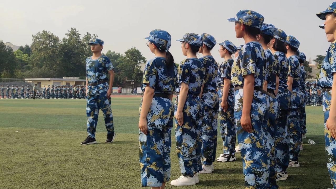 56名本科新生悉数完成了军训任务。在此期间所有同学无缺勤,无病假,以饱满的精神状态、坚韧不拔的意志品质,交出了一份满意的答卷。他们隶属于四团四营一连,虽说是人数最少的连队,但是喊起口号唱起军歌来声音嘹亮、气势如虹,走起队列来整齐如一、步调一致,获得了所有教官及负责人的一致认可。