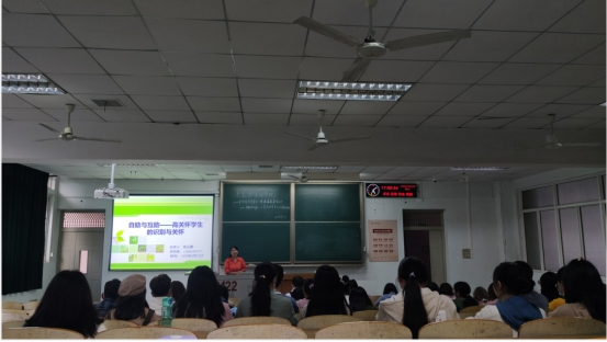 于2020年9月23日下午在13教D122室组织开展了2020年秋季学生骨干心理健康教育培训。心理专干张云雾老师为全院本、研班级的班长、团支书、心理委员、安全委员、寝室长等50余名高年级学生骨干做了题为《自助与互助——高关怀学生的识别与关怀》的专题培训。