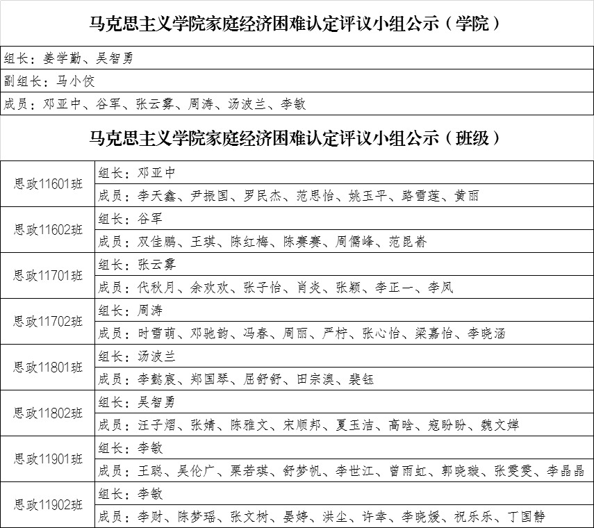 【信息公示】成人色情网 家庭经济困难认定评议小组名单
