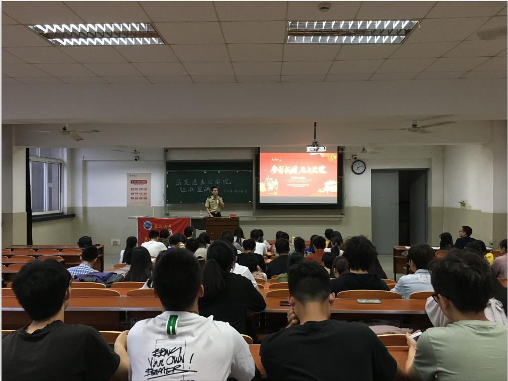 征兵宣讲会在主教207顺利举行,来自城建学院的2016级退伍老兵韩王戴贤同学担任宣讲员,征兵专干李敏老师和各年级学生代表参加了宣讲会。