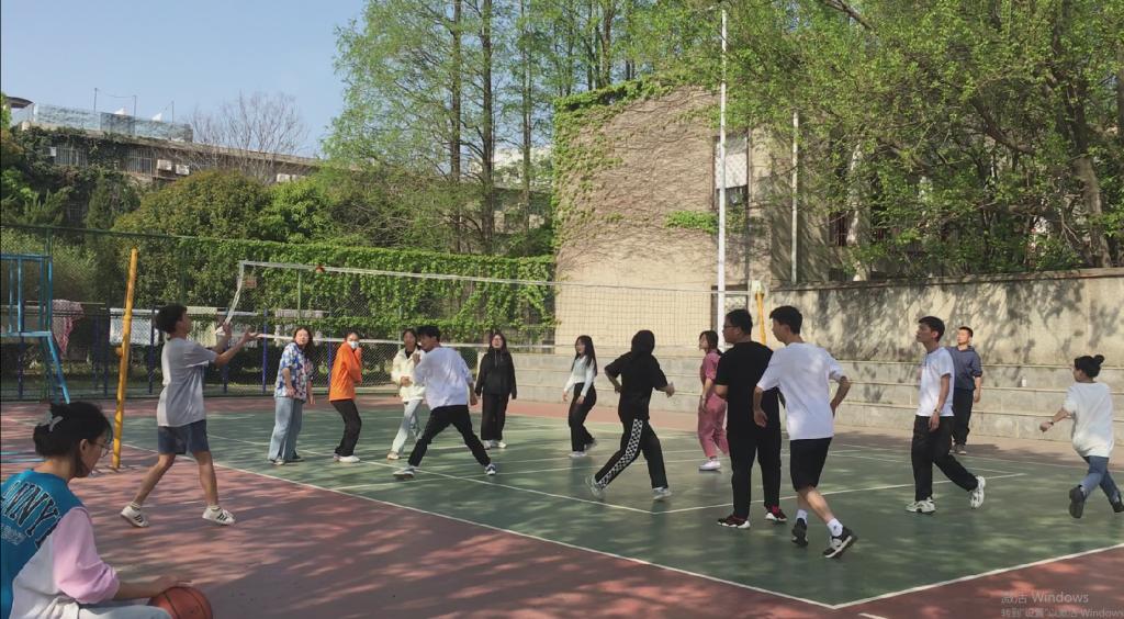 所谓“奔跑吧少年”顾名思义就是多人绑腿赛跑,赛出速度,赛出激情,赛出团结。短短的几十米,因为身高体型、步速配合各异,状况百出,但是互不相让。“摇摆不定的沙包”是由两名同学相隔一定距离对面站立互扔沙包,中间的同学在自由跑动的过程如被扔中则视为淘汰,技巧和反应力的双重考验,紧张又刺激。“害你在心口难开”实则是套路重重的文字游戏,考验同学们的观察力和判断推理能力,一不留神就会掉进同伴设下“陷阱”......目光再转向排球、羽毛球、乒乓球,小球在空中画出完美的弧线,这时如果稍微走神就会被对方“一球扣杀”。激情与汗水,呐喊与欢乐同在,张云雾老师的到来更是把活动推向了高潮。趣味游戏的欢乐值和旁边啦啦队的激情呐喊吸引了运动场外不少其他学院的学生,他们被欢声笑语感染着加入了趣味游戏行列。