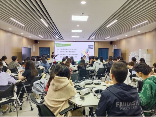 讲座中,张老师首先让同学们以小组为单位交流讨论“你的压力来自哪些方面?”一些同学表示来自于繁重的学习任务;还有一些同学认为来自于情感与生活的琐事。张老师就此提出:“压力的前提是环境的刺激。”并从认识、评估、应对压力三方面以感受、评价为线索,对当代大学生的压力问题进行系统的阐述。