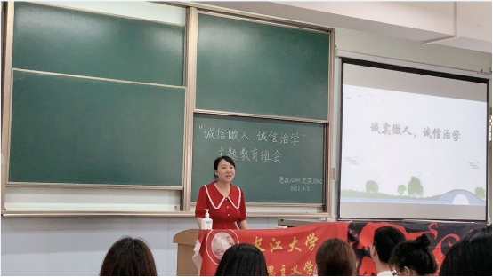思政12101班与思政12102班联合开展了“诚信做人,诚信治学”主题班会。本次班会围绕安全教育和诚信教育两大主题开展。班会邀请了班主任何波老师和辅导员张云雾老师莅临指导。
