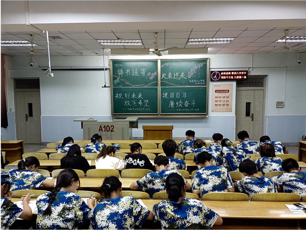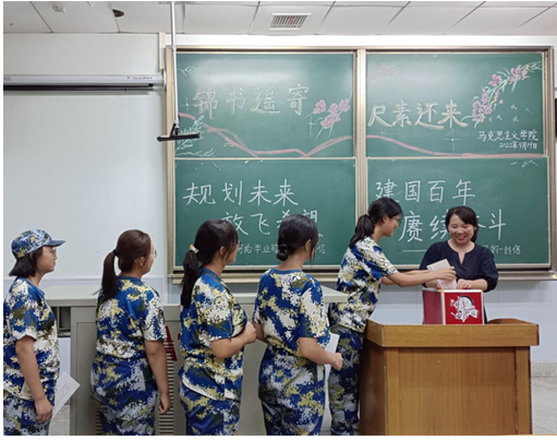 于13教A102室举行“锦书遥寄,尺素还来”时光邮筒系列活动——“规划未来,放飞理想”写给毕业前自己的一封信、“建国百年,賡续奋斗”写给2049年自己的一封信。本次活动由辅导员张云雾主持,全体22级本科生到场参加。