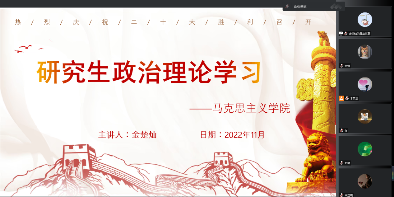 研究生会通过腾讯会议举行了11月份研究生政治理论学习交流会,深入学习贯彻党的二十大精神,加强成人色情网