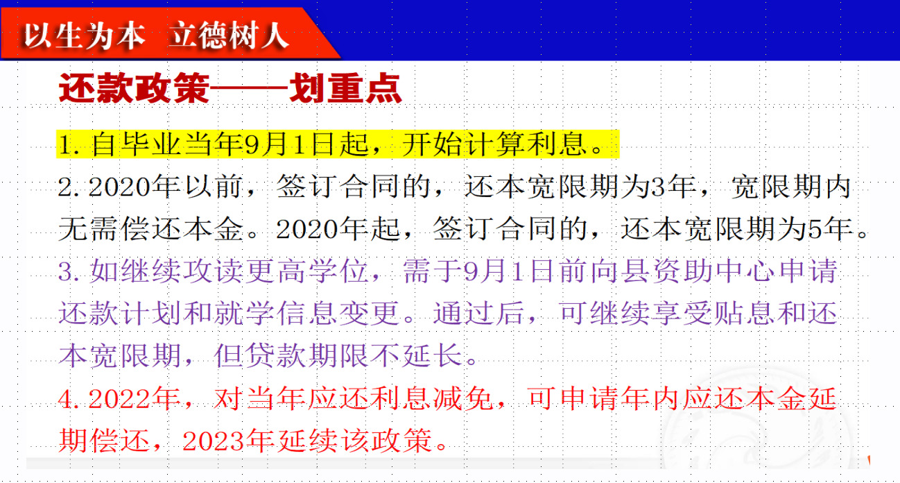 办理了生源地贷款的学生名单,引导大家高效地、有针对性地开展还款工作。接着,张老师从“还款方式”、“利息计算方法”、 “违约后果”、“其他注意事项”等方面,细致讲解了生源地助学贷款的相关信息。会议重点强调了提前还款的方法、按期还款的必要性和不按期还款的严重后果。此外,还现场填写了纸质版的毕业生明细表。
