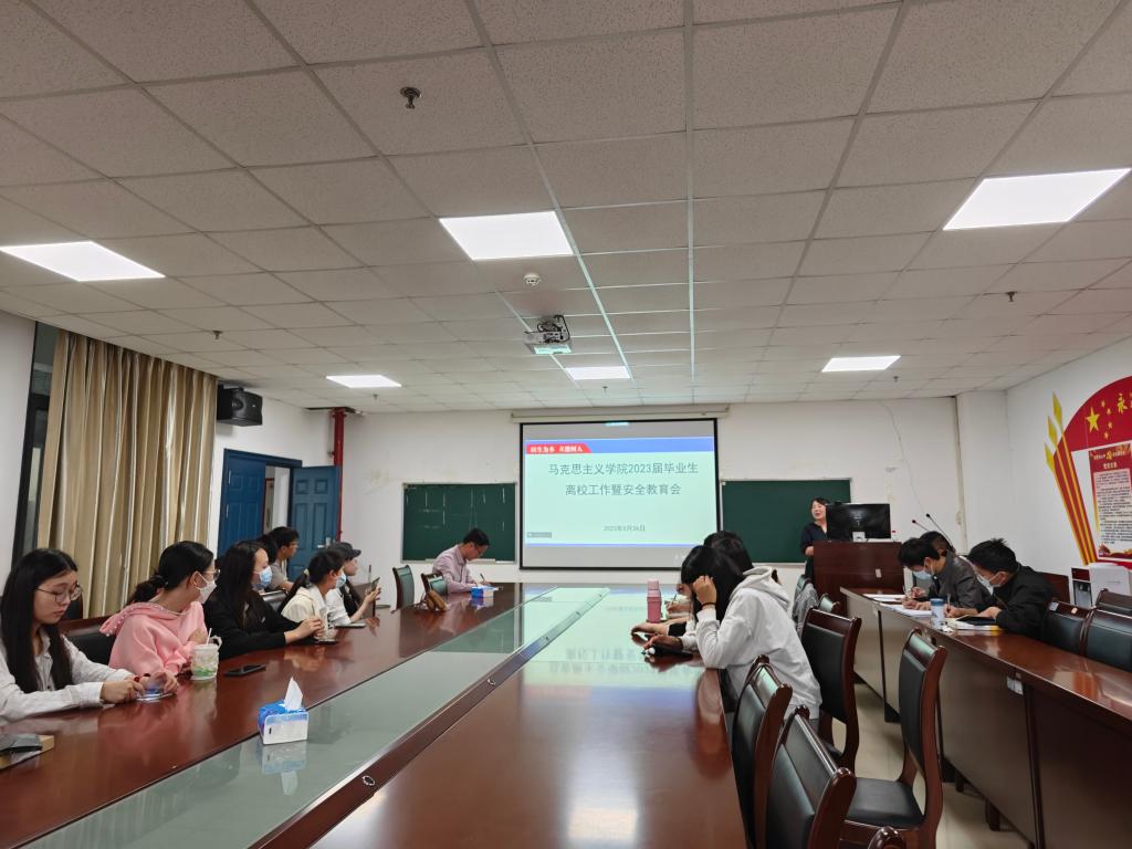 在文科楼1104室召开了2023届毕业生离校工作会暨生源地助学贷款还款确认培训会。本次会议由学工办张云雾老师主持。