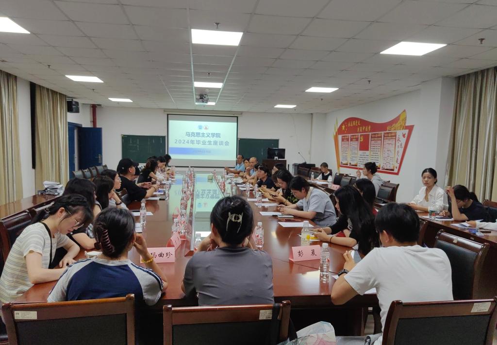 在文科楼1104室召开2024届毕业生代表座谈会,全体院领导、毕业班班主任以及部分青年教师与24位本、研毕业生座谈交流。