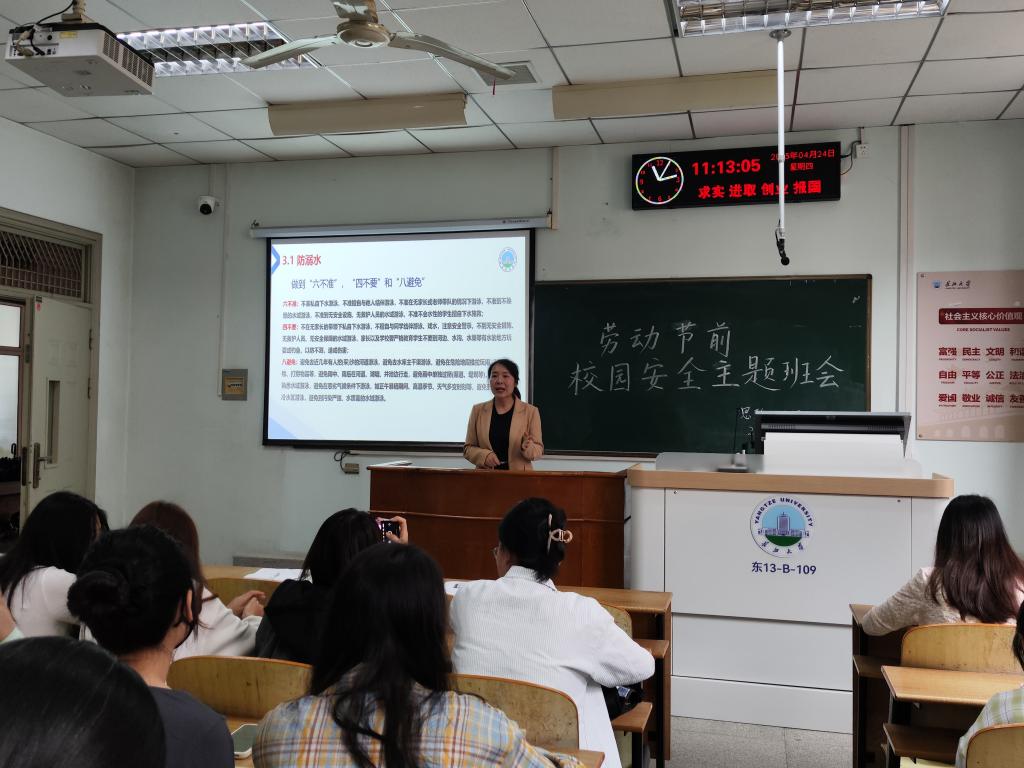 于近日组织开展了劳动节前安全教育主题班会,学院党委副书记汤慧珍、全体班主任、辅导员以及本、研学生参与其中。