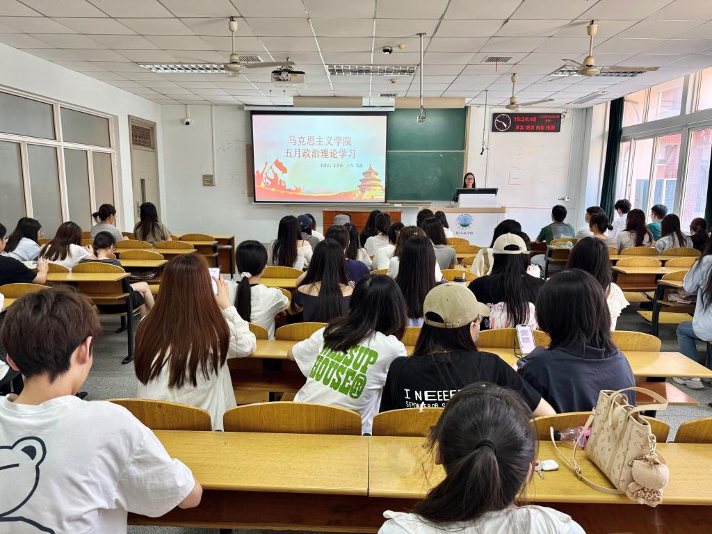 研究生政治理论学习在13教B-210教室如期开展。研究生会实践部部部长赵梦帆主持学习,2024级全体研究生参加学习。