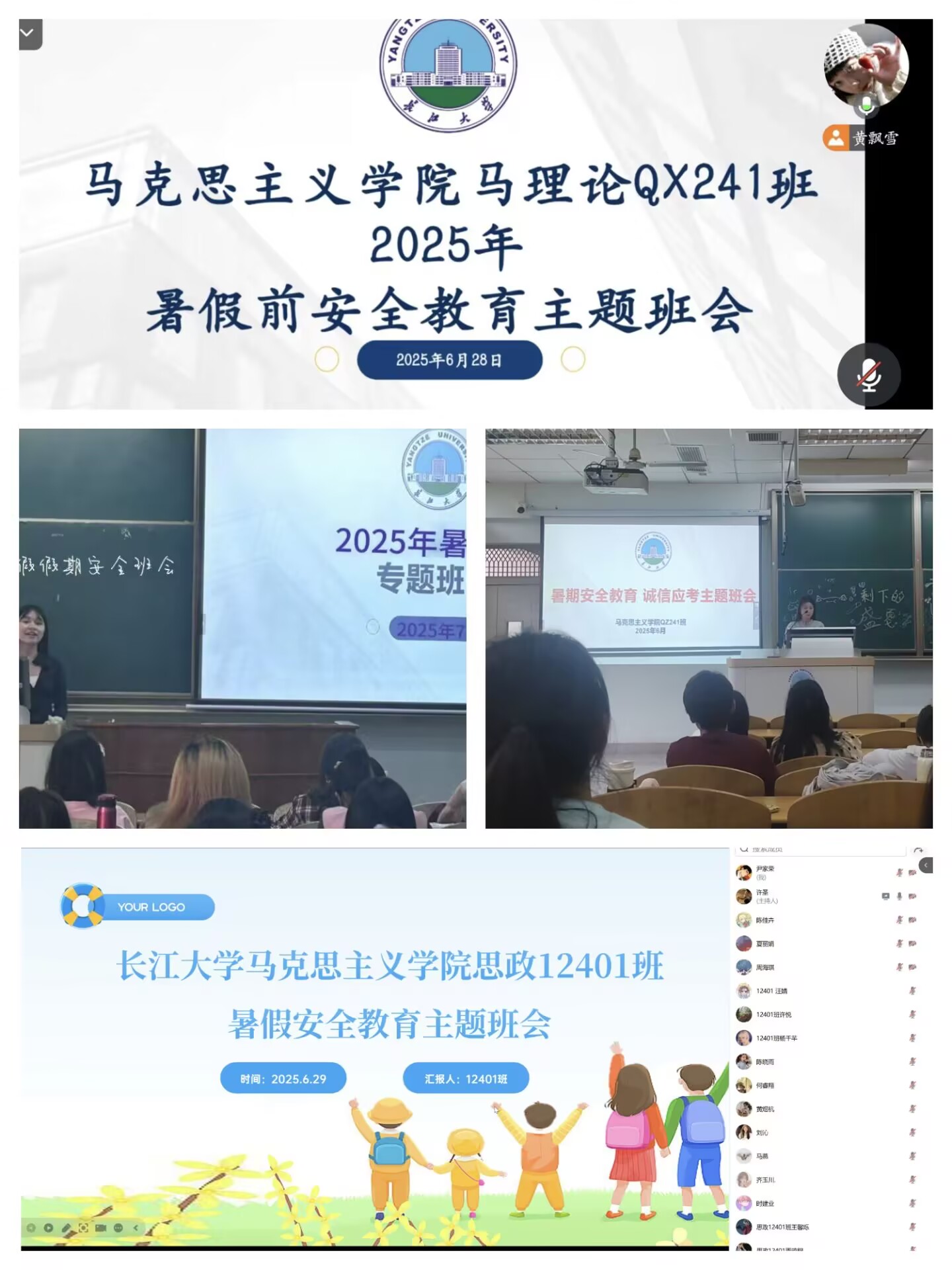 于近日组织本、研各班级以线上、线下相结合的方式召开了暑期安全教育主题班会。