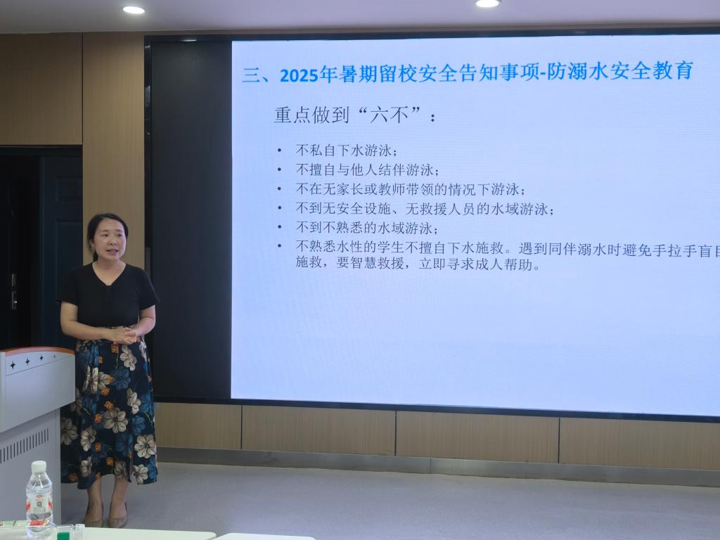 为规范学生暑假留校管理,学院还召开了留校学生安全教育专题会。辅导员张云雾强调了留校申请手续办理流程、假期留校学生管理要求,开展了防溺水和消防安全教育;副书记汤慧珍呼吁同学们合理安排假期时间,积极参与社会实践和有益的文体活动,不断提升自身综合素养。