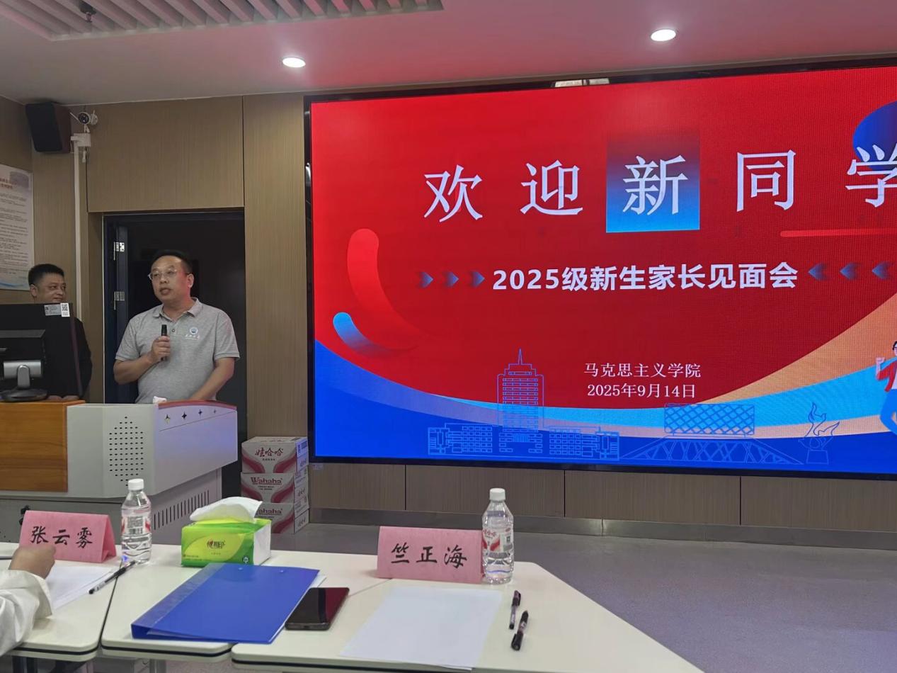 竺正海代表学院向新生及家长致以热烈欢迎。他强调,大学是人生的重要阶段,更是成长成才的新起点。围绕“与真理同行,与时代同步”这个主题,竺正海鼓励同学们坚定理想信念、夯实思想基础、勇担时代使命,希望同学们沉心静气、踏实求学,认真对待每一门课程、深入研读经典著作、积极参与社会实践,并尽早进行职业规划,为未来发展奠定坚实基础。同时,他指出,学生的全面成长需要家校协同努力,希望家长持续关心孩子的身心发展,做孩子成长路上的支持者和引路人,共同助力学生卓越成长。