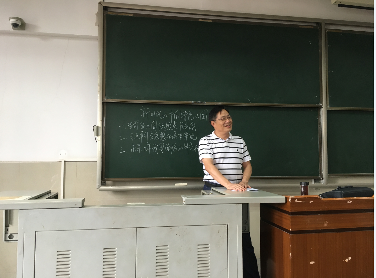 526上午第二大节,李家宝副校长在主教207教室给学生讲《形势与政策》课。李校长对学生说:为了给同学们讲好这堂课,他准备了半个月。同学们都为李校长认真对待课堂教学的态度所感动,教室响起了热烈的掌声。李校长讲授的专题是《新时代的中国特色大国外交》,在上课前几分钟,李校长就在黑板上列出了讲授的内容:一、当前五大国际热点解读;二、习近平外交思想的具体体现;三、未来几年我国面临的外交挑战。李校长给同学们详细解读了以下五个国际热点:1、石油期货市场开张;2、金正恩两度访华;3、西方群殴俄罗斯;4、中美贸易争端;5、巴以冲突。下课时间到了,李校长讲授得还意犹未尽,课堂再次响起了热烈的掌声。李校长表示以后有时间继续跟同学们交流。李校长讲授的内容详实、逻辑紧密;注重联系相关史料;注重价值观念的引导,是一堂生动的思政课。同学们到课全,听课认真,收到了很好的实效。