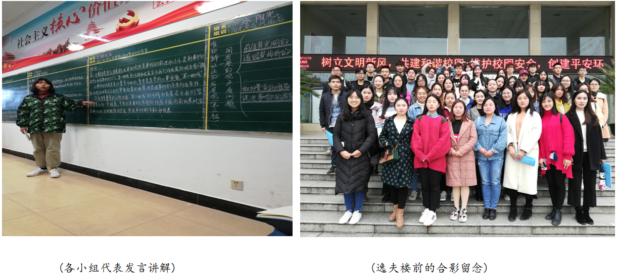 “前途是光明的,道路是曲折的……”,教室里传来朗朗读书声,那是梦想之声,是希望之声。课前导读结束后,全体学生在彭亮老师的引导下,学生进行激烈的分组讨论,随后,各小组代表上台发言。部分学生对讨论内容提出质疑,教师和学生一起讨论并解决难题。教学接近尾声,教师通过PPT展示思考题,让学生们自由回答。最后由学委总结,整节课圆满结束。