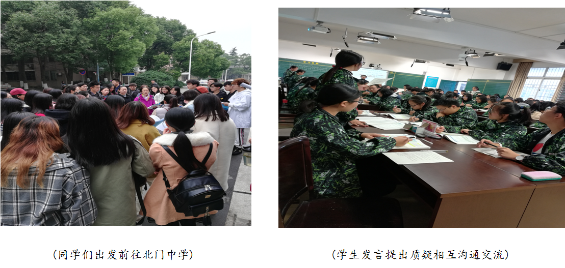 思政16级全体学生在万敏老师的带领下从图书馆出发乘车前往荆州市北门中学参加见习活动。同学们在老师的安排下,安静有序的走进教室。