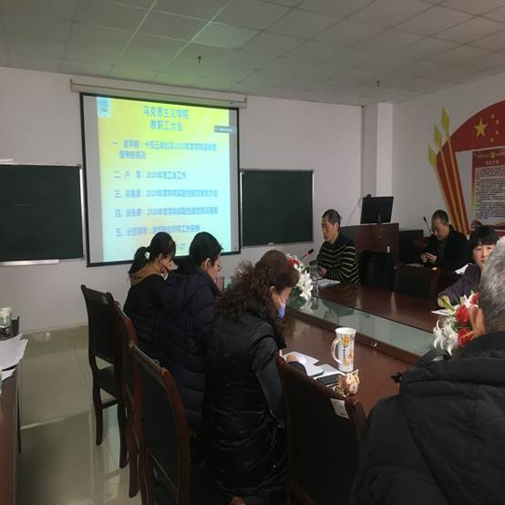随后,副院长涂江波、黄晓云布置了学院寒假前后的科研、教学工作,马小佼副书记通报了寒假前后学生工作和就业工作,并就招生宣传工作特别是招生宣传视频与及向校友拜年视频的拍摄工作做了具体安排,吴智勇书记传达了荆州市及学校防疫工作要求,并开展了寒假安全教育。最后,吴智勇书记结合党的十九届五中全会精神和校、院十四五规划,对学院年度考核与绩效分配等进行了总结,号召全院教职工以党的十九届五中全会精神为指引,以校、院十四五规划为目标,以学院目标考核指标为抓手,团结起来,群策群力,为建设一流马院而共同努力。