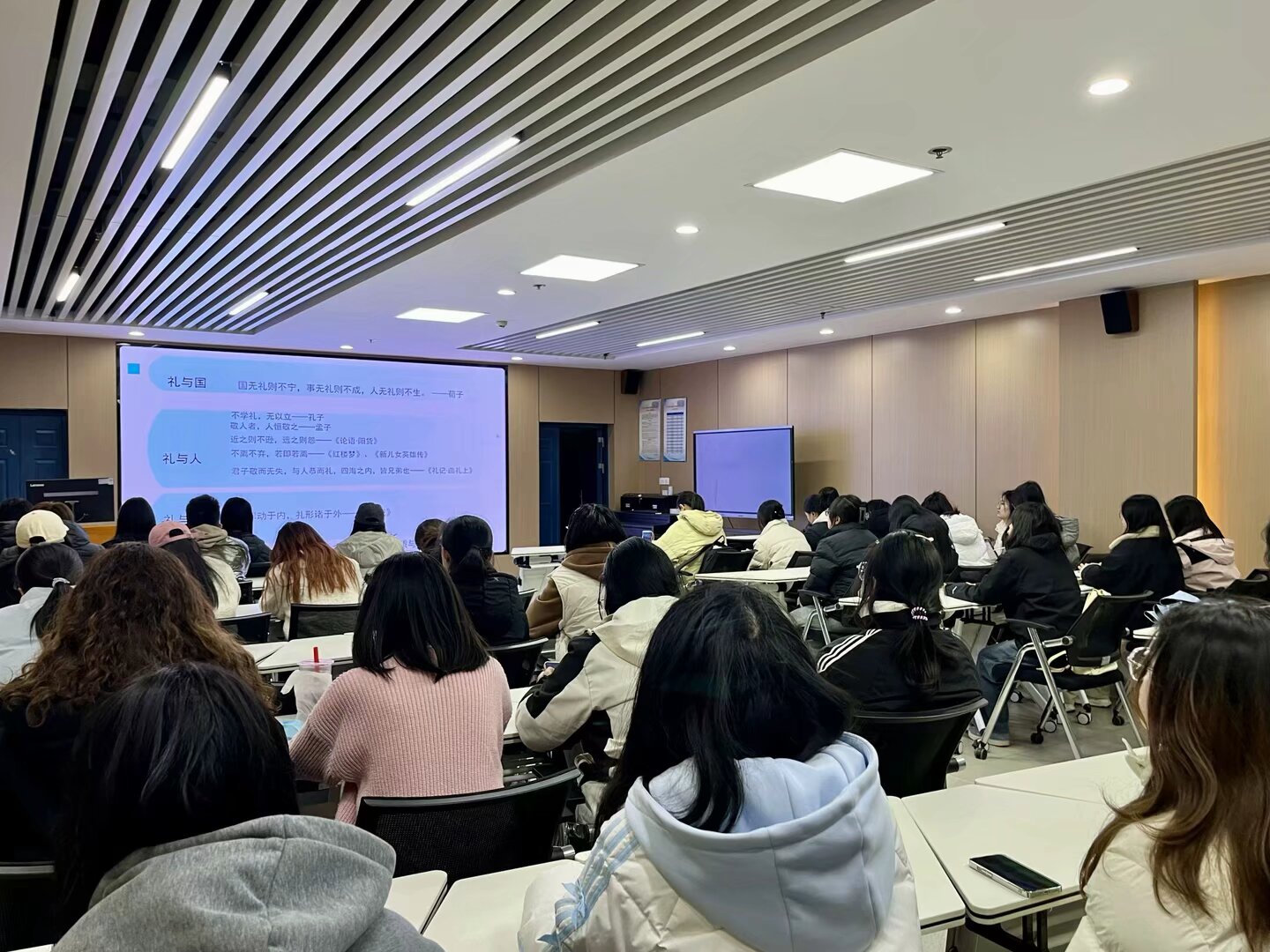 组织各年级学生,于文科楼1008室集体观看教育部“互联网+就业指导”公益直播课《领悟生涯智慧 开启精彩人生》。